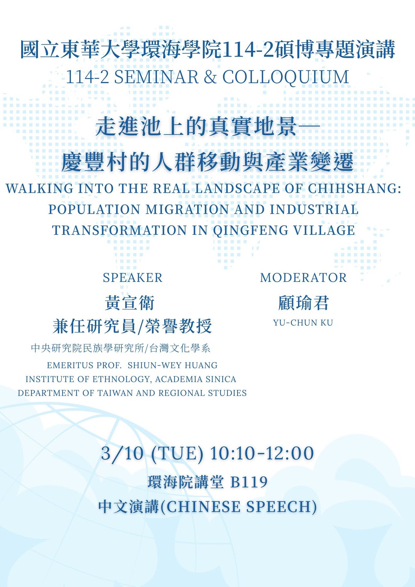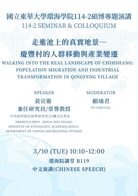 115年3月10日(二)邀請 黃宣衞 教授 演講
