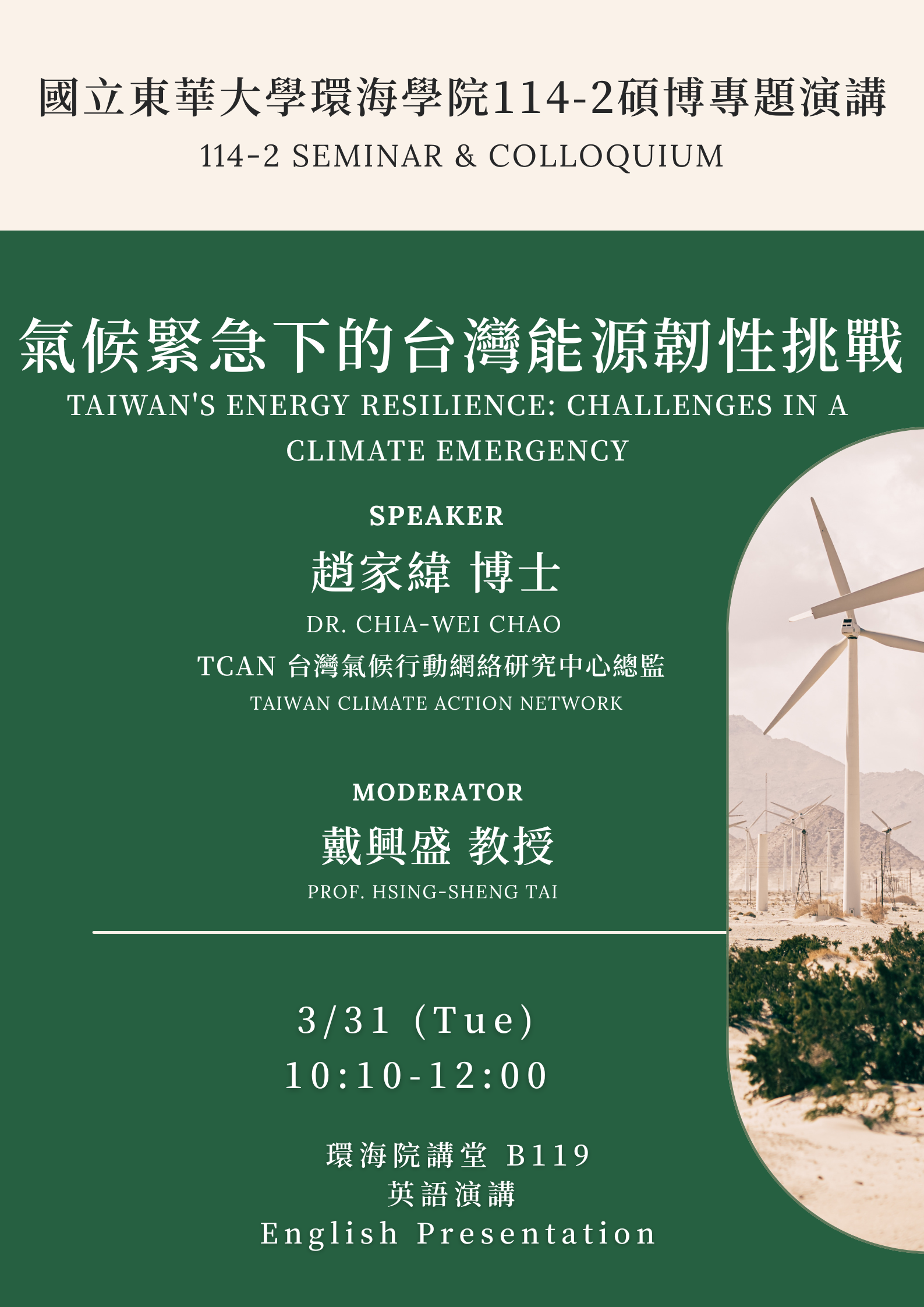 Speaker: Dr. Chia-Wei Chao (Director, Taiwan Climate Action Network - TCAN)